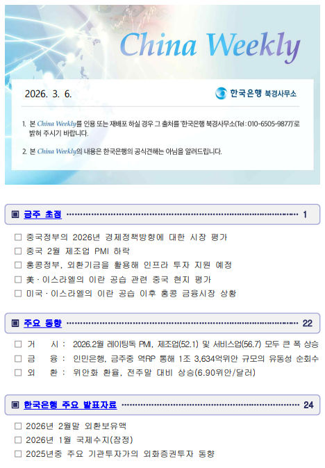 [한국은행 북경사무소] China_Weekly(2026-3-6)