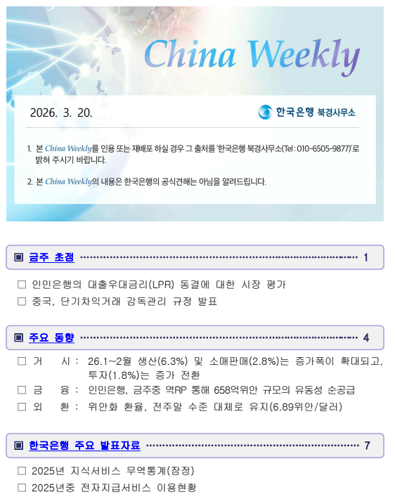 [한국은행 북경사무소] China_Weekly(2026-3-20)