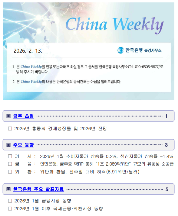 [한국은행 북경사무소] China_Weekly(2026-2-6)
