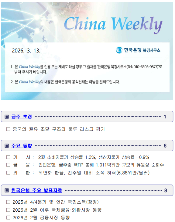 [한국은행 북경사무소] China_Weekly(2026-3-13)